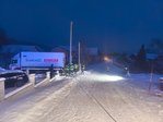 Nach dem Eintreffen an der Einsatzstelle wurde diese abgesichert und ausgeleuchtet, um einen sicheren Arbeitsbereich zu schaffen. Anschließend wurde der LKW mittels der Seilwinde unseres TLF gesichert und so weit aus dem Graben gezogen, dass das Anlegen der Schneeketten möglich war.